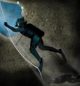 Tim和Tonya完成他们的探索后开始返回。虽然这次他们已经比以往去了这个洞穴更深地方,但他们很清楚他们的潜水计划,他们开始向返回水面的方向前进。 一切都进行得很完美。他们返回了洞穴的主室和并找到了永久固定的,能引导他们返回水面的主绳索。Tonya将他们的勘探线连接到他们的主绳索上。Tim知道随后他们会慢慢退出洞穴,并完成自己的减压,这些还将需要30分钟。于是他带头游着,并很小心得避免扬下面淤泥。他们慢慢地游着,同时也让柔和的水流动他们前进。 当Tim转回头想和Tonya进行确认时,突然意识到她不在他的身后。他立即转过身来,开始寻找她。几分钟后,他发现Tonya,她就在底部的浮着,她的二极头不在她的嘴里,她没有任何呼吸的迹象。 当Tim看着出口,意识到那他要拖着Tonya游多远时,他知道他不可能做得到。他不得不抛下Tonya,然后游回去寻求帮助。