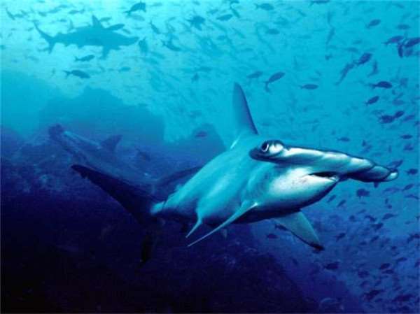 锤头鲨,因为头部的形状而得其名,它的头部各有左右两个突起,上面各有着眼睛和鼻孔,整只鲨鱼的形状像极了一把槌子或是锤头。锤头鲨在很多地方已经被列为保育类生物,但可惜的是虽然如此,美国政府却没有确实立法保护。