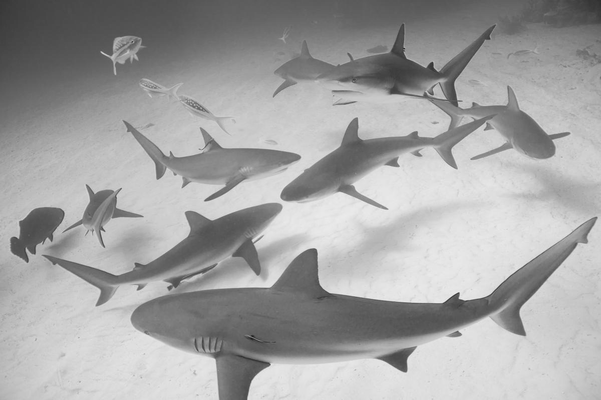 身形庞大和光滑的加勒比海礁鲨,如果能与它们偶遇,一定会给你留下深刻印象,但他们很少在你潜水的时候陪伴左右。虽然佛罗里达到巴西的水域中能经常遇到,但shark-feeding(喂食鲨鱼)潜水着实让潜水员有机会在大巴哈马岛,近距离的与它们互动。跪在40英尺的水晶般清澈的水中,喂食一条鲨鱼能够带来十几个或更多的礁鲨。它们游成一个圆形围绕着潜水员,离你也许只有几英尺远的地方。如果够幸运,还可以看到鲨鱼静静的环绕周围。如此的和平宁静,会让你对这个海洋顶级捕食者产生无比的爱恋。