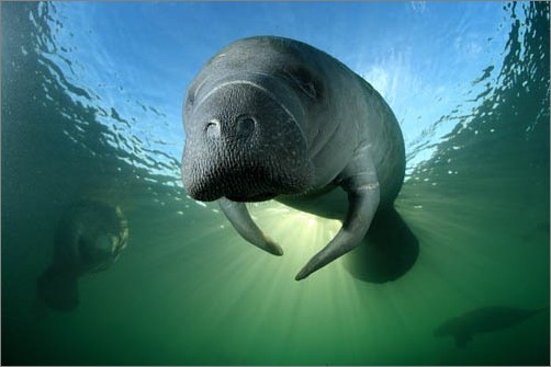 海牛。在寒潮来袭时,这些温顺的哺乳动物就不约而同的聚集在这样的一个地方。但是像2010年春天那样的极度冰冻情况任然能导致一些海牛的死亡。