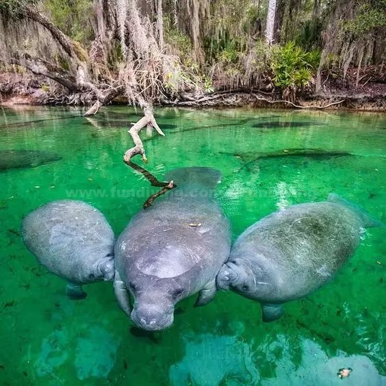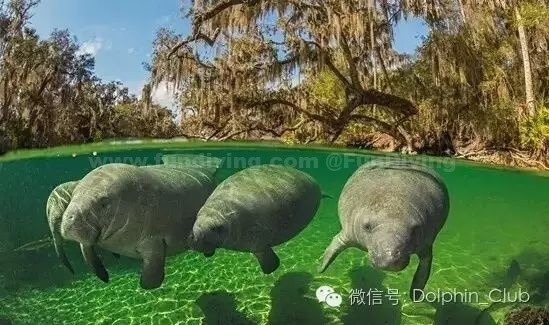 在冬季或者水温较低时,海牛会成群结队泡温泉。KingCrystalRiver国家野生动物保护区专门为海牛保留的温泉