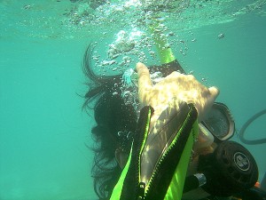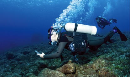 自BC泄气入水后,就开始一连串的动作,包括耳压平衡、面镜排水、慢吸慢吐.....等。一趟40-50分钟的水下之旅,其实就是在这些不断的动作中完成。透过这些动作,不但能尽情欣赏海底风光,同时,也保障了自身安全,这是每一位潜水人都能做到的本能反应。
