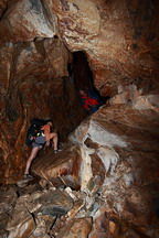 北京鱼谷洞,从溶洞的入口到入水点之间,潜水器材的搬运是一项艰苦的工作。
