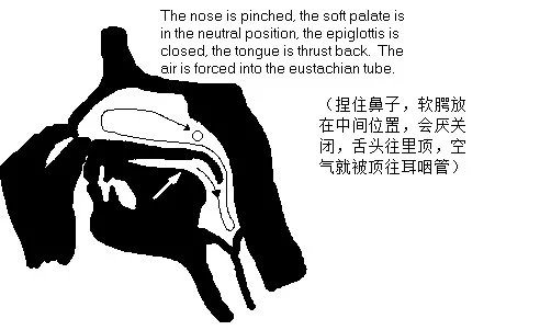 首选,我们需要理解法兰佐耳压平衡的原理: 把肺部的空气抽到口腔,锁住喉咙,用舌根和周围肌肉的力量,像泵一样把口腔的空气通过软腭顶到鼻腔,从而进入咽鼓管,进入中耳,从而平衡中耳。