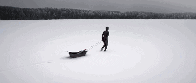 Johanna与北极圈内恶劣的环境带给了导演强烈的创作欲望。 Ian 把他在这极寒环境下的感官体验用史诗般的镜头呈现在了观众面前(几个镜头下来脑海中就瞬间闪现《荒野猎人》有木有)。拖着个人用品在茫茫白雪中艰难前行的Johanna,就像虔诚的朝圣者一样,每一步如此缓慢又如此坚定。屏幕上整块的黑白对比画面,几乎没有灰色调过渡,纯净大气。搭配着Johanna娓娓道来的个人故事,仿佛我们的内心也一同跟着Johanna受到洗礼。终于,仪式开始,Johanna 缓缓潜入极寒冰下,世界在这一瞬间彻底改变了。