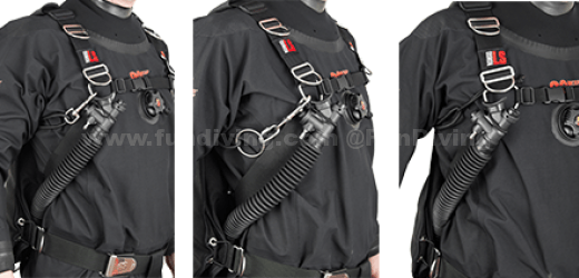 - 透过适当的环形绳调整,气瓶可以维持更贴身,更流线型 – 特别是对胸型轻薄的潜水员。这能產生较少的水阻,在水中保持流线型,并且减少对脆弱环境的伤害。