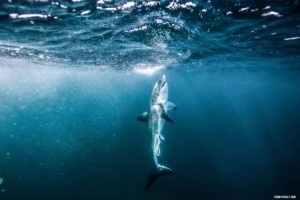 南非东南海岸…南印度洋……小雨……浪高2-3米……水温17度……在阴冷中穿上湿透的潜水衣,在大浪中漂荡7个小时……