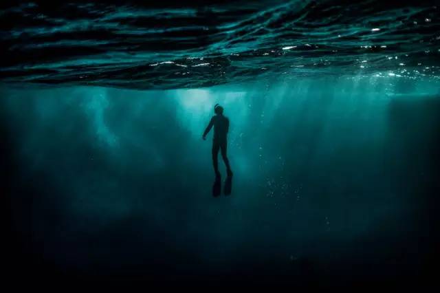 等鱼群退散,只剩下潜水者的孤影。一切又恢复了安静。