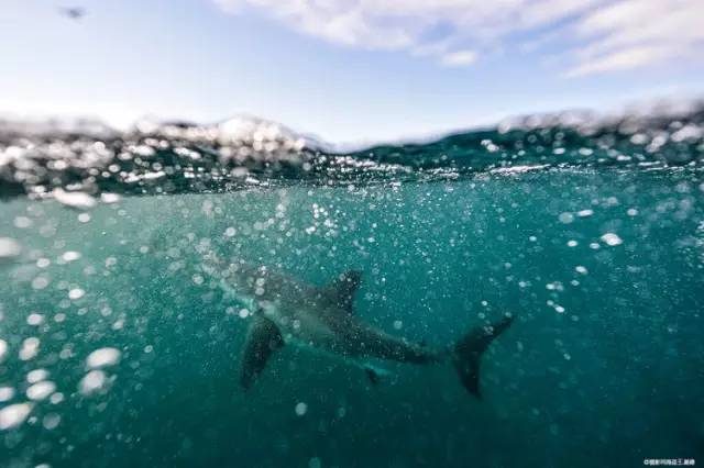 最奇特的是,这场盛宴中,体型不同的鲨鱼都奔赴如此盛宴,槌头双髻鲨、铜鲨、黑鳍鲨、虎鲨和大白鲨,宽吻海豚、普通海豚也结队而上,曾经的天敌在沙丁鱼面前结成同盟,共同围剿沙丁鱼。