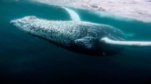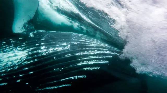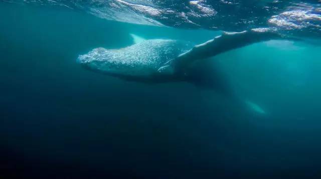 第三就是那无与伦比的合声,在海面下能听到大翅鲸的巨大的声音,似悲叹、呻吟、又或颤抖,如长吼,抑扬顿挫,交替反复,因为在水下是没办法判别声音的来源,所以会让人有一种四面楚哥的感觉。
