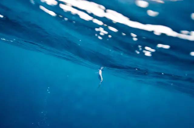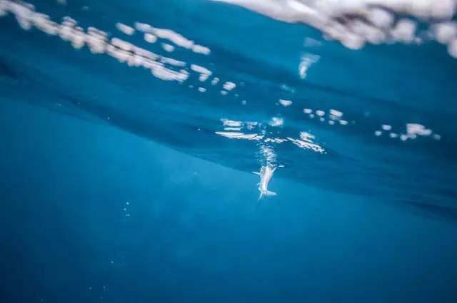 这时我看到一条因为鲣鸟冲击而受伤的沙丁鱼,慢慢的脱离了群体,飘上水面,直觉告诉我,这可能就是它生命的最后几秒种了……