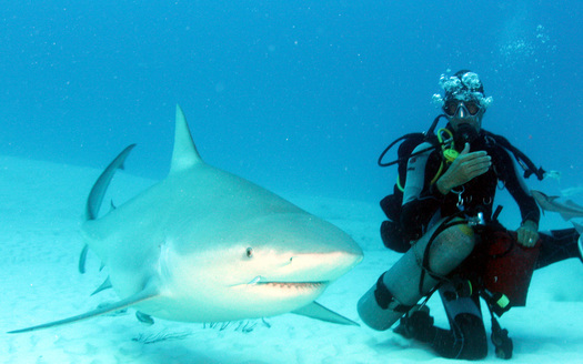 每年11月至3月,距离墨西哥坎恩(Cancun)约一小时车程的卡曼海滩都有一群公牛鯊在岸边游役,原因是公牛鯊总爱回到出生地产卵繁殖后代,而牠们亦是少有可以生活於咸水或淡水的鯊鱼,亦喜爱咸淡水交界以及较温暖的水域。于是,Bull Shark Diving成为卡曼海滩季节性的潜水活动,不少潜水人会专诚到来伏在海底,等候公牛鯊出没,我们亲身体验了,一条粗壮的公牛鯊在身边游过,我说不怕,你信不信?