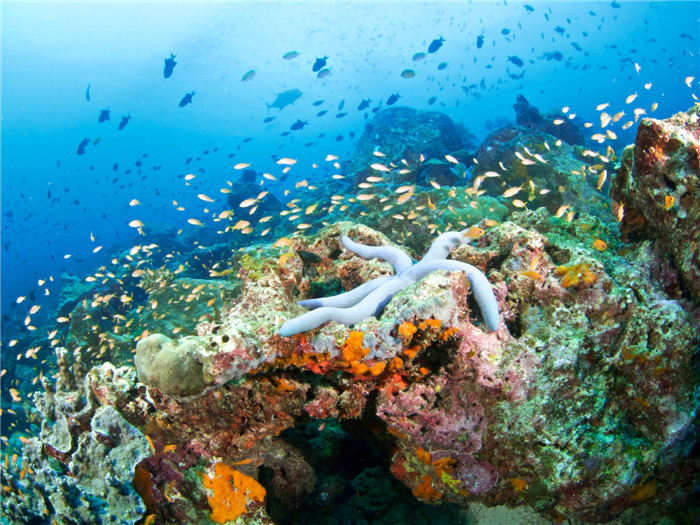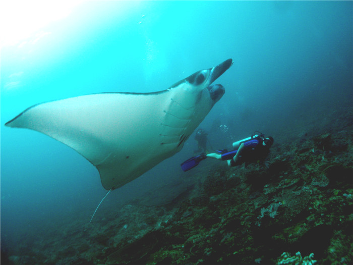由于地处安达曼海、印度洋的洋流交汇处,海洋资源丰富。这里是大型水下生物随季节水温变化迁徙时的必经之路,成群的Eagle Ray鹞鲼、Manta Ray蝠鲼、Mola mola翻车鱼甚至鲸鲨会信步闲庭地从度假村门前的海域通过。