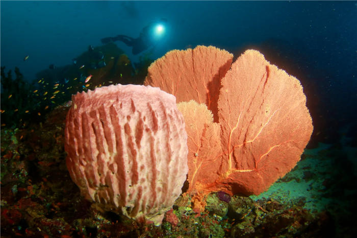 这里是海扇花园,最大最完整的海扇就生长在这里,直径达3米宽。
