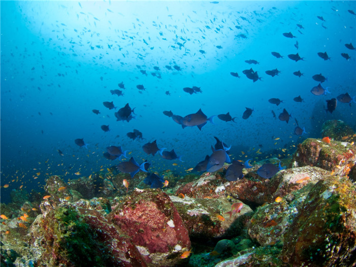 5米三钟停留的时候,你可以在这里看到罕见的群居蓝色鹦鹉鱼,通常在别的地方,你看到的鹦鹉鱼往往只是三两条,像这种成群的,只有在这里才能看到。
