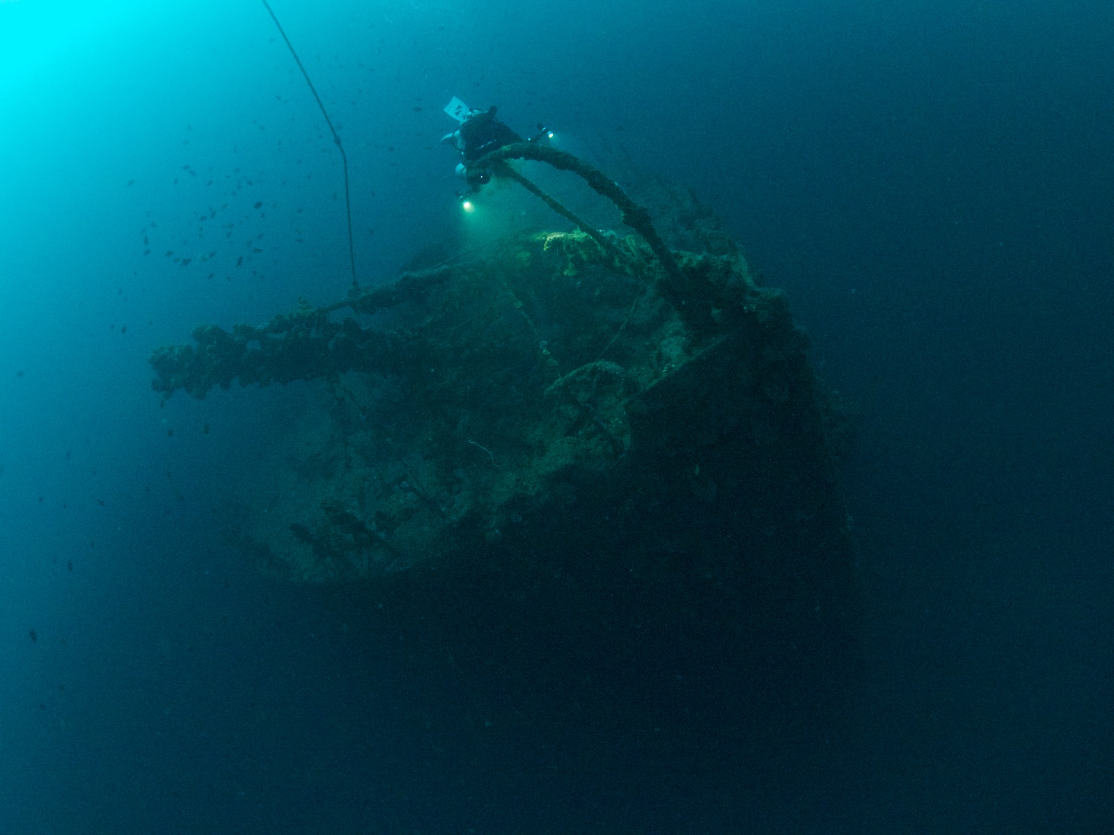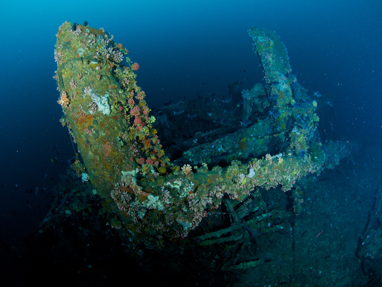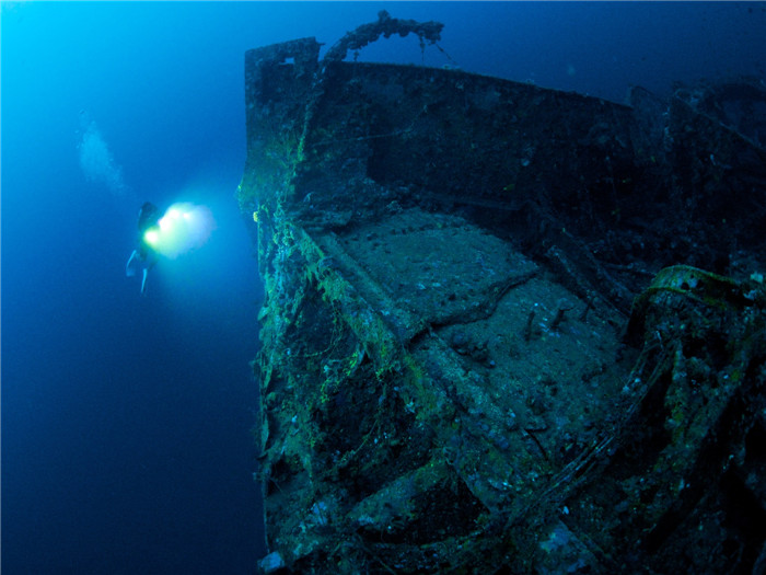 船只平稳地沉在55米深处,甲板大约在45米,船底65米。驾驶舱已坍塌,但船身保持完好。残骸布满珊瑚。由于深度较大,能见度好,普通AOW潜水员在30米处足以一览宏伟的沉船。只有减压潜水经验丰富的潜水员可以近距离探索。如果你是喜爱渗透沉船的专长潜水员,不访到这里来造访这艘如今仍极少被深入船舱的沉船吧,同时别忘了寻找匿身于此的特别鱼种黑点神仙鱼Genicanthus melanospilos。