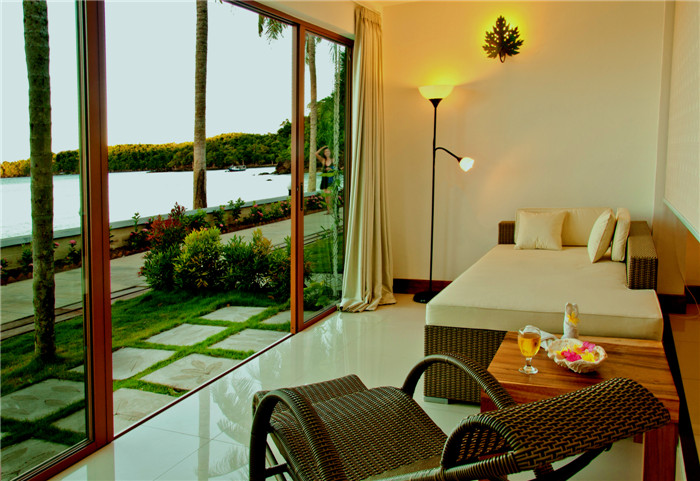 无论是坐视私家海滩的无敌海景房或绿意盎然的花园房,整片的落地玻璃墙外都有一个私人小花园。阳光明媚的午后,可以慵懒地躺在那张面朝大海或花园池塘的午睡床上享受闲暇的度假时光。