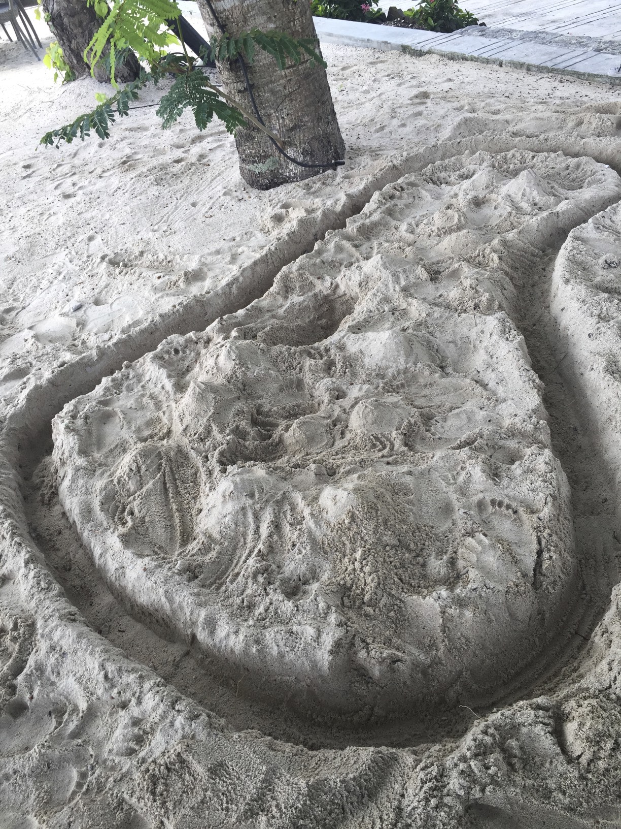大厅和潜水中心浮台间的一片树荫下的沙地是孩子们的天地,给寄居蟹挖条长长的跑道或建座漂亮的公主城堡就足以让孩子们开心地玩上一整天,家长陪着捣蛋鬼们疯累了,可以趟在旁边的吊床上喝杯冷饮偷偷休息下。