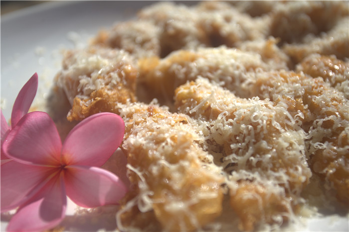 这里的厨师还可以根据客人的喜好提供各种订制调料(如变态辣的辣椒酱等)。今天闲聊起的一些东南亚特有的香草,Vincent马上带着我们到后厨花园里看看种植的实物,明天的茶点上就会出现用这种香草做的一款甜而不腻的糕点了。
