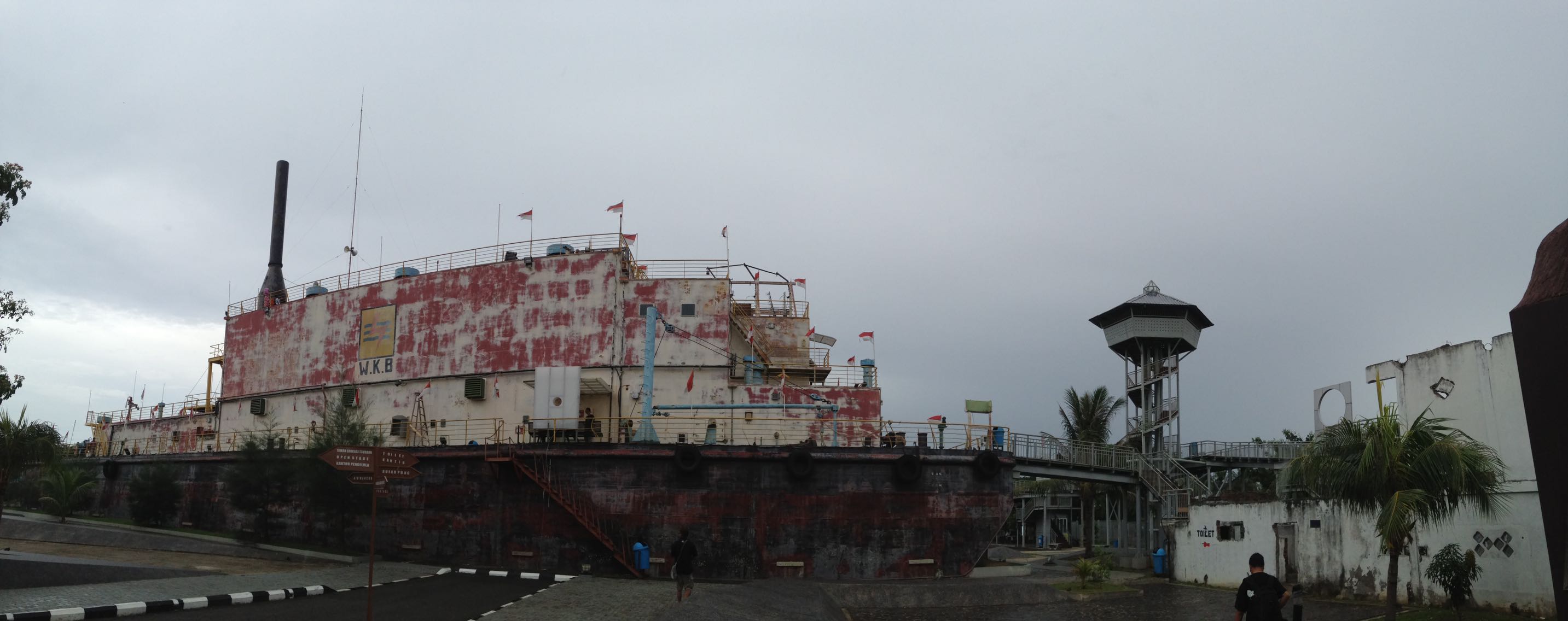 2004年印度洋发生的那次骇人听闻的海啸,班达亚齐是受灾最严重的地方。当时有一艘2600吨的柴油发电轮被40米高的海浪冲离海岸8公里,在如今纪念馆的地方停下。由于它救下了当时爬上船的国民而被誉为方舟。海啸过后,印尼政府在世界各界的帮助下,在方舟停下的地方建起这座海啸纪念馆,并开始整个国家的重建。纪念馆内除了这艘巨轮,还有它所经之处留下的一些断壁残垣,时隔十年,人们仍可以从这些历史痕迹中感受到当时那场海啸的来势之凶猛。