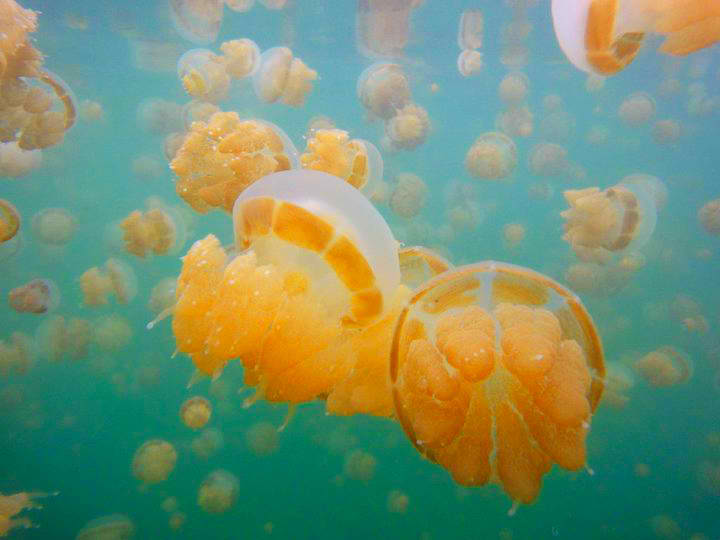 水母湖是一种由于特殊的地理条件而形成的特异的自然现象。现在湖里的生物除了每天来访的人类以外,主要就是这些水母和一些藻类了。更令人惊叹的是,这些通常令潜水人头皮发麻的水母全都丧失了毒性和攻击用的触须,成为一种非常可爱的生物。