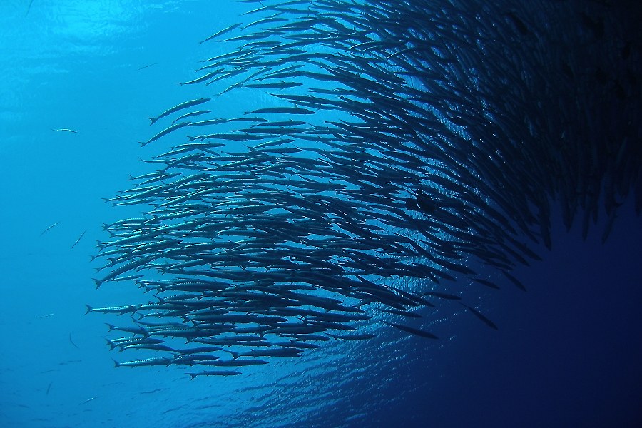 还没下水,已听到船头的尖叫声。这里的魔鬼鱼都喜欢在水面呼吸阳光的气息,所以不用潜入水底,就已经能看到很多。有些魔鬼鱼体型巨大,双翅打开超过3米宽。魔鬼鱼喜欢在靠近水面的地方游动,因此,在这里浮潜或者自由潜也能和魔鬼鱼近距离接触。看魔鬼鱼的最好时机就是在月圆的那几天,这时你可能会遇到超过20条以上的魔鬼鱼在水中盘旋。这庞然巨物会笔直向人滑翔过来,当人倒吸一口气时,魔鬼鱼翻一个身再一个直角滑入深海中。见到排队的魔鬼鱼从头上不足一米的地方掠过,看到如此优美的姿势,几乎让人不能呼吸。