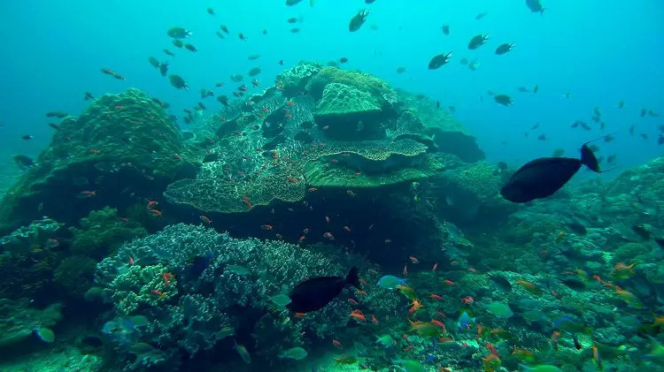 Blue Lagoon(蓝礁湖)有些漂亮的浅水礁,适合海底摄影及夜间潜水。这儿5米开始有大型的珊瑚礁,鱼类各式各样!有常驻的苏眉、多种礁鲨、石头鱼、海鳗、蓝带鳗、魔鬼鱼、章鱼和八爪鱼、树叶鱼和观星鱼等等。这潜水景点由于深度及生物种类佳,非常受摄影师欢迎!