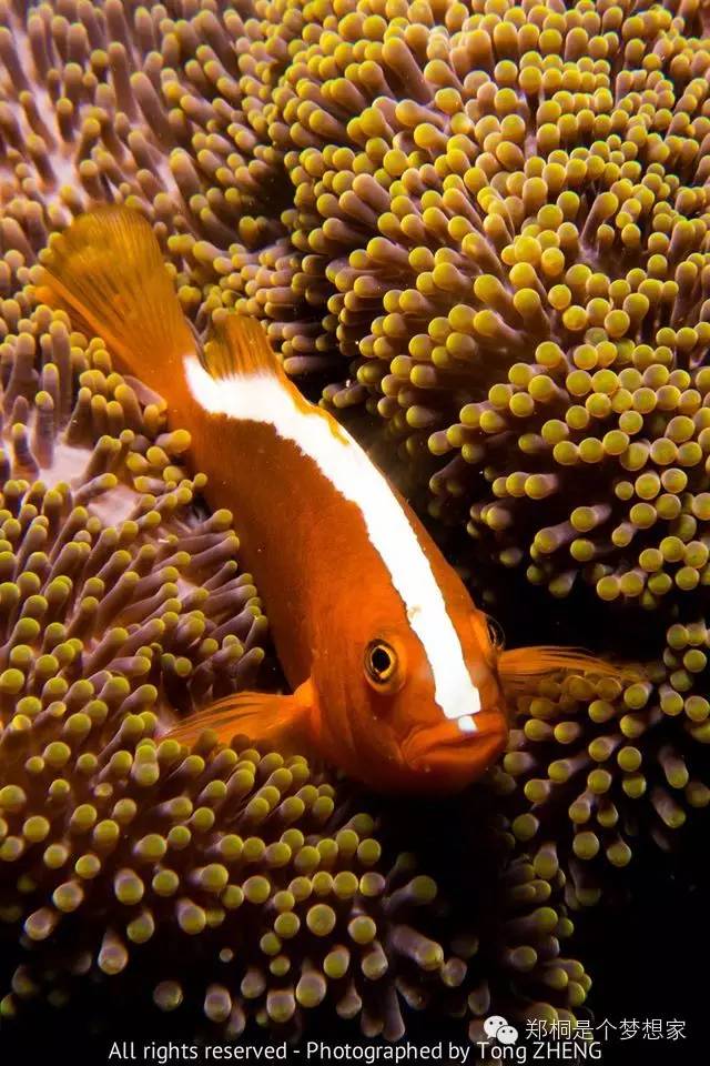 这种从头到尾一条白线的小丑鱼也许是这个海域的特色品种?