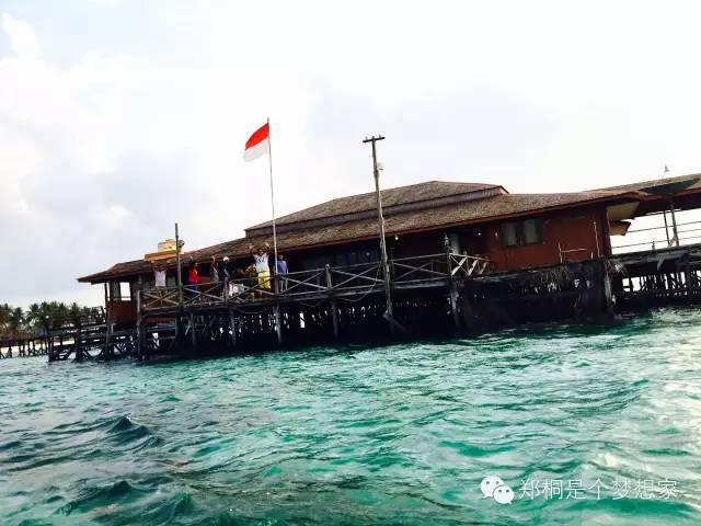 离开Derawan的时候,所有潜导和工作人员和我们的挥手告别,上空飘扬着印尼的国旗。非常有意义的一张照片。