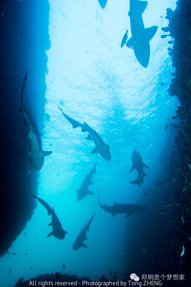 看完这些照片我相信不是潜水员的朋友估计已经给这么大一群鲨鱼吓尿了吧。但是我相信潜水员们,尤其是玩水下摄影的潜水员们已经口水哈喇子都流下来了吧。
