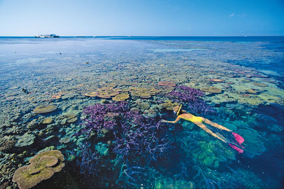 浮台的珊瑚礁世界汇集异常丰富的海底鱼类:鲹鱼、石斑鱼、甲鱼和许多其他小鱼,同时还有聚集在岸边等待游人喂食的巨型毛利濑鱼和2米来长的巨型昆士兰鲶科鱼(Groper)等。浮潜很精彩,可潜到附近的大峭壁,那里有海龟、礁鲨和梭鱼等水生物。
