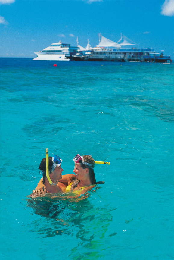 到达方式:从圣灵群岛地区的各个度假村出发,乘船前往或者搭乘直升机、水上飞机前往 Reefworld海上浮台。