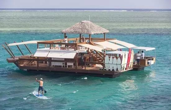 全球唯一的海上酒吧,四周被无边的惊艳海景环绕,没有喧嚣,没有人潮,你期不期待!这家酒吧叫CLOUD 9,是艘木造帆船,漂浮在斐济的马马努卡群岛附近,整个独特的场地遍布环绕声系统、阳光甲板、吊椅和日光椅,一边吃明火烤披萨,一边跟着电影在甲板上跳舞,周围是一望无际的翡翠色大海,在这种场景里什么烦恼都被抛到九霄云外啦!