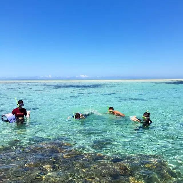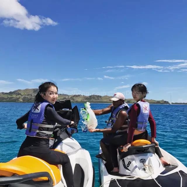 这里的摩托艇绝对和你以往在普吉、苏梅、塞班、帕劳玩的不一样,你可以开到完全看不到岸边的海中央,不是在岸边转圈圈那么简单哦。前方没有任何障碍物,你可以一路飞驰,尽情享受在海中驰骋的速度,直到风大到你睁不开眼。越过一座座无名小岛,最后停留在一片清澈到几乎无人来过的海域。可以说在这里浮潜胜过于任何出海的行程,海里密密麻麻的斑斓鱼群,这简直不是上帝的水族馆,而是属于你一个人的!