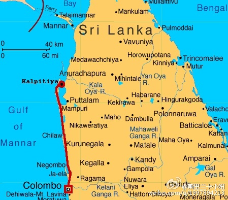 红线尽头即为Kalpitiya,科伦坡驾车约3小时车程。
