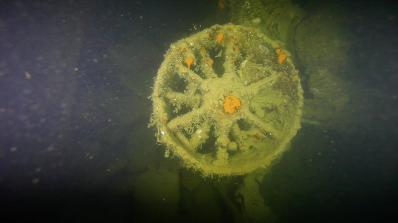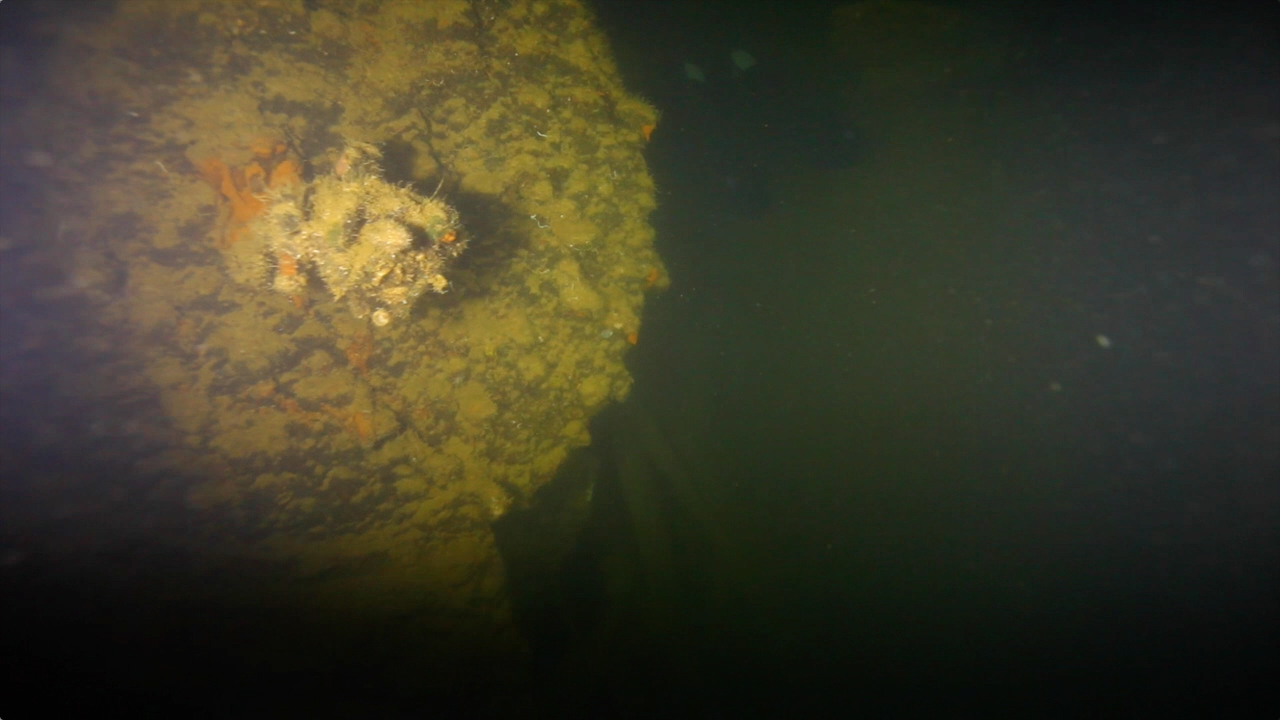 Ekkai Maru侧卧在海底,左舷上有个巨大的从内向外的爆裂口,奇迹的是下方的锅炉房,还保存完好。