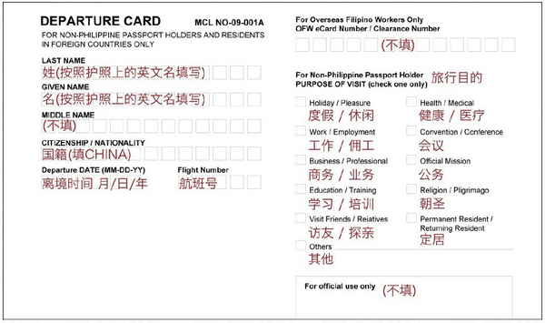 抵达马尼拉国际机场后,先到指定柜台办理回国登机手续,需要出示个人护照和返程机票,然后领取登机牌。领取登机牌后,进入出境检查区,把护照、出境登记表、登机牌交给工作人员进行检查,检查合格后,工作人员在护照上加盖出境章,游客携带好相应证件前往安检处和海关处进行检查,合格后,便可以前往航班候机室等待登机。