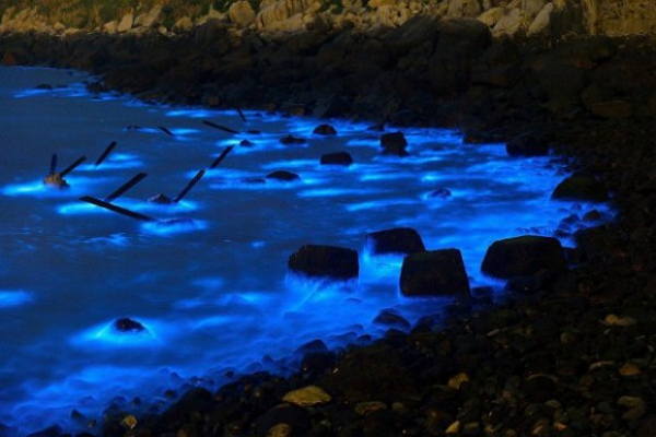 看到这张照片,你一定以为这只是某部电影的特效对吧?那你可就太小看大自然了!我们的陆地有绵延不绝的山脉以及壮丽的峡谷、天空有迷幻神秘的绿光,那么你知道海洋里,有一种叫做“夜光藻”的东西吗?而这样宛如好莱坞电影特效的天然美景,竟然就在台湾!夜光藻,俗称“海上萤火虫”,是一种甲藻门单细胞生物,当环境受到外界干扰时,它们体内的酵素就会进行催化作用而发光。这种藻类遍布世界,只是通常聚集量少,所以也不容易被发现;幸好,这样的美景,在台湾马祖就看得到!