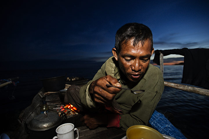 作为世界上仅存的海上牧民,戴安娜狭促的小船挤满了各式各样的日常生活用品——简便油桶,熏黑的汤锅,塑料餐具,一盏煤油灯和一对盆栽植物。巴瑶人在海洋上生活了好几个世纪,他们经常来往于菲律宾、马来西亚和印度尼西亚之间的海域。