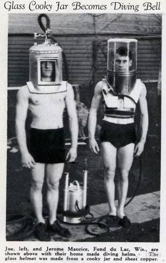 一篇教你如何用热水壶制作潜水头盔的文章。(1932)