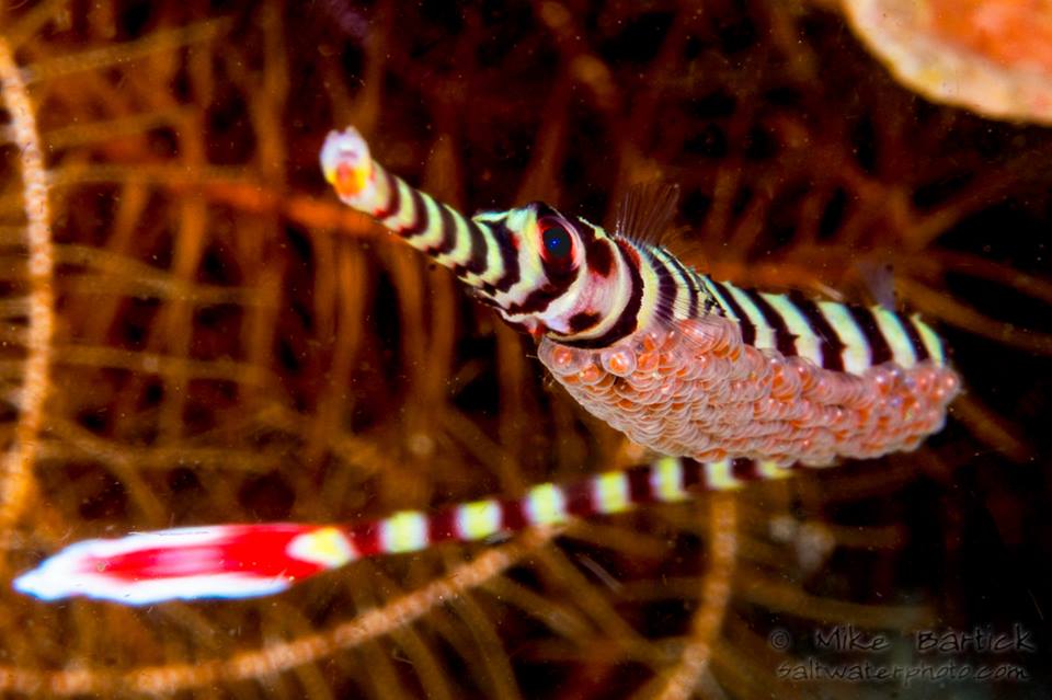 ANILAO! Daddy Duty.. Nikon D7100 105mm F23 @ 1/250 2xYSD2 strobes Common banded pipefish full of very mature eggs photo by Mike Bartick