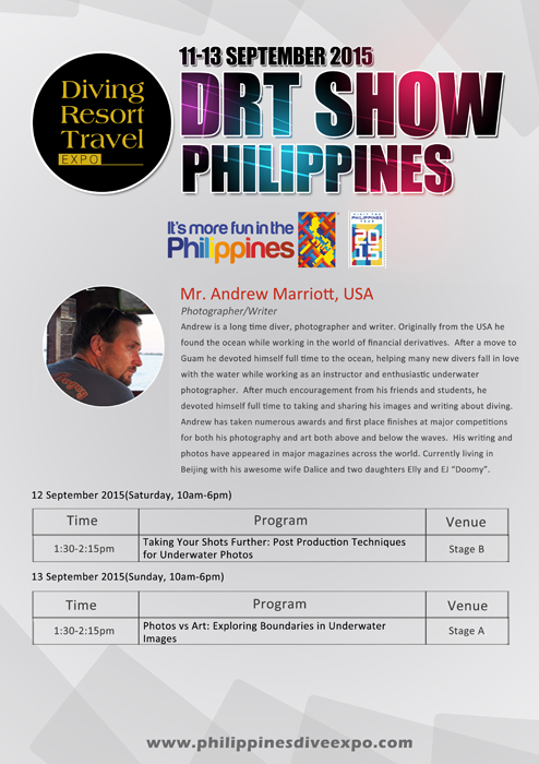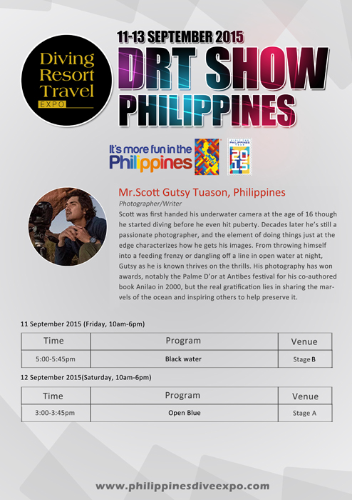 2015年菲律宾国际潜水暨度假观光展(DRT Show Philippines 2015)将于9月11-13日在菲律宾SM Megatrade Hall举办。