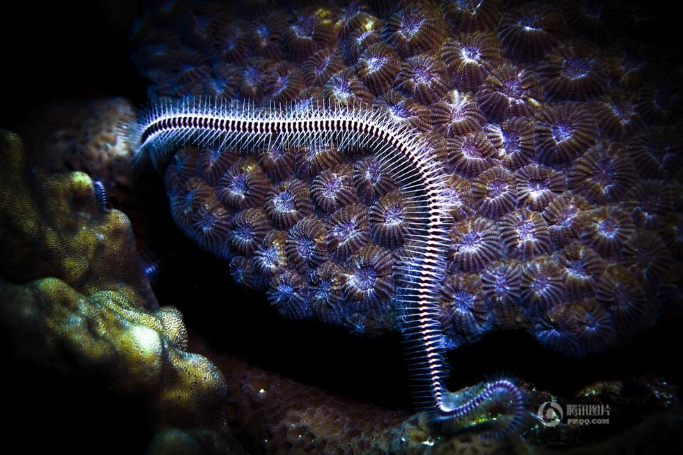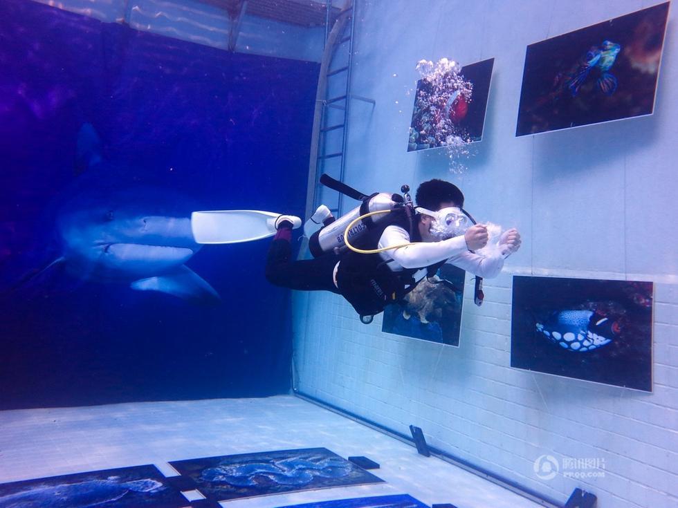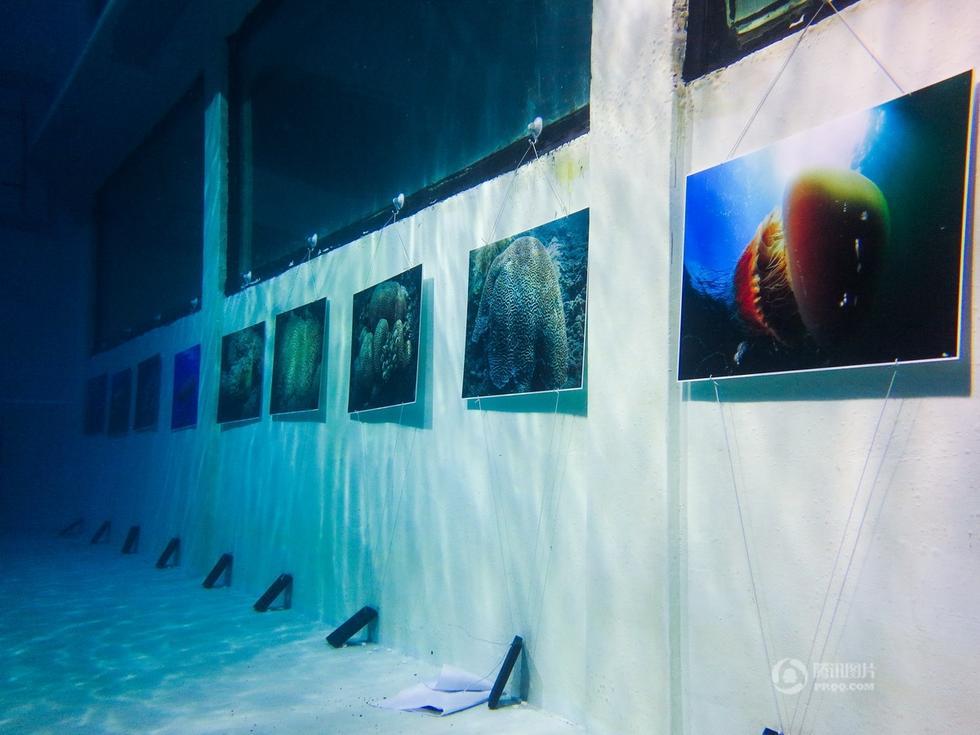 此次室内水池环境摄影作品展开创摄影展览新方式,强调参与性、互动性和体验性。海洋生物仿佛在真实的海底隐匿生活着,而参观者身着潜水服置身在5米深的水底,一种改变以往感官经验的方式被呈现出来,照片与水奇妙地融为一体,给参观者非同一般的视觉体验。