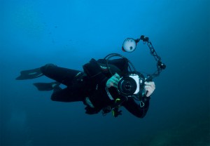 还要强调的一点,水下摄影是一件非常需要耐心的事情,一张好的照片需要足够的耐心和好运气,因为水下难免会出现拍摄主体被众多其他鱼类环绕的情况,比如鲨鱼潜时,喂鲨可能会吸引来很多其他鱼类。这种时候,唯一的办法就是耐心等待。