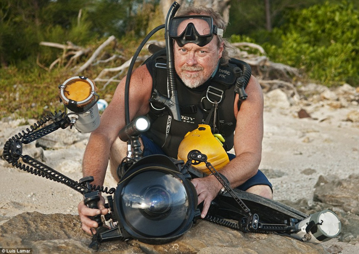 国家地理杂志最新一辑的封面故事特载了斯基尔斯那些让人不可思议的照片——摄于最近一次在巴哈马群岛的蓝洞执行拍摄任务期间——对于这位人称成色十足、精神豪迈的探险家,杂志也通过刊登这些照片以表敬意。
