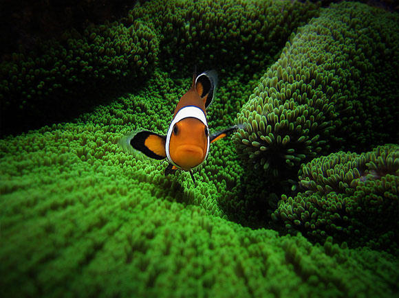 给珊瑚礁里的居民拍照时,小心翼翼是很重要的。在超广角镜头中只装下一条完整的沙丁鱼是件很难完成的任务。