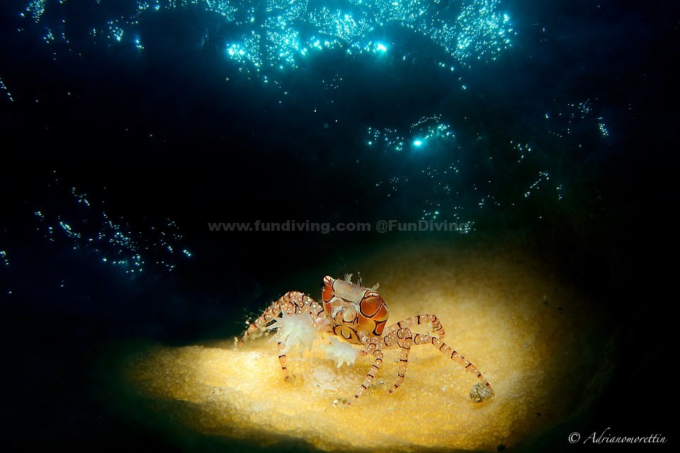 pompom crab (Lybia tessellata) Lembeh Strait, Indonesia Nikon D800E, Nikon 105 micro +1 falsh Seacam con snoot Retra LSD. Photo by Adriano Morettin