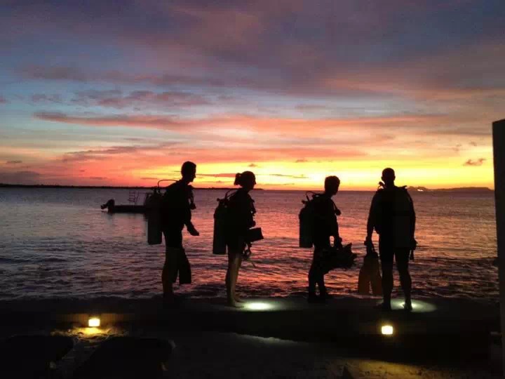 一般潜导都喜欢带大家在黄昏的时候进行夜潜。一来可以减少借助灯源,就能看清水下,二来这可以更容易准备装备。黄昏也是观察生物形态的最好时间,比如海洋生物之间的战斗、求偶、交配、产卵。喜欢夜潜的话,当你观察它们的时候,最好不要开太亮的灯光,而且速度也要减慢,你会有意外的惊喜。
