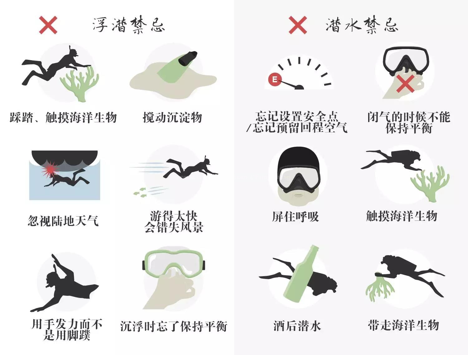千万不要贪便宜购买廉价杂牌,廉价的杂牌浮潜用具大多是一次性再生工业塑料制造,很多带有毒性,表面粗糙,有浓烈刺鼻的酸性物质,如果使用,人体明显表现为头晕恶心等症状。