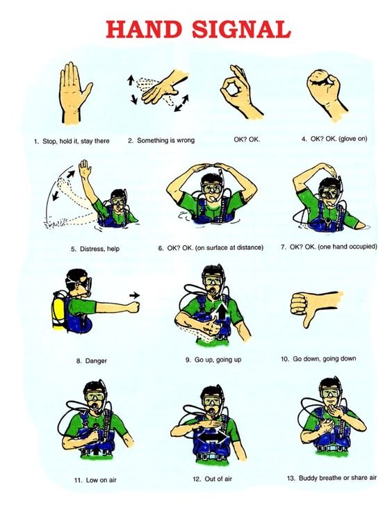 首先记得复习水下通讯手势 Communication Signals /Hand Signals。